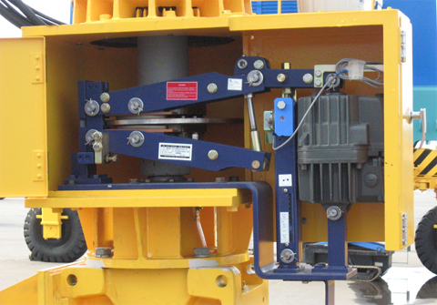 | Được ứng dụng cho nhiều loại máy móc tại các khu công nghiệp, bao gồm cả cẩu di chuyển, giúp ngăn ngừa tai nạn do trôi cẩu. | Kiểm soát bánh xe sau của cẩu bằng cách kẹp chặt bánh xe. Lực kiểm soát có thể được tăng cường bằng cách lắp đặt thêm phanh. |